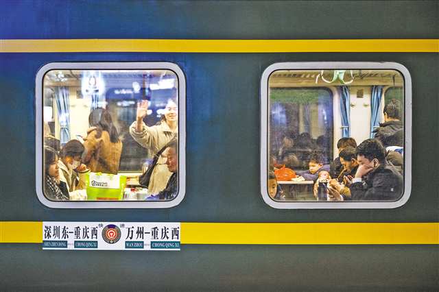 1月14日,重庆西站,K4734次列车上的旅客挥手告别。(资料图片)记者 张春晓 摄\视觉重庆