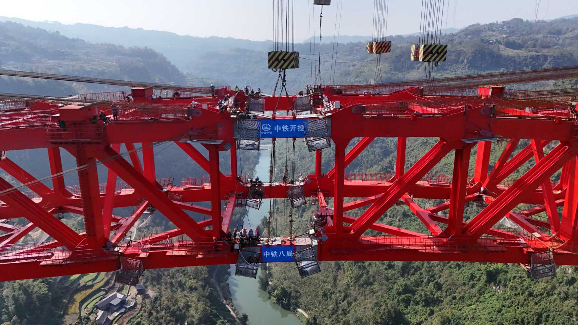 中铁八局项目技术负责人黄健介绍,作为全线重难点控制性工程,该大桥以“超大跨径、大吨位吊装、高精度合龙”等技术特点,成为国内山区大跨度钢桁拱桥建设的典型代表。
