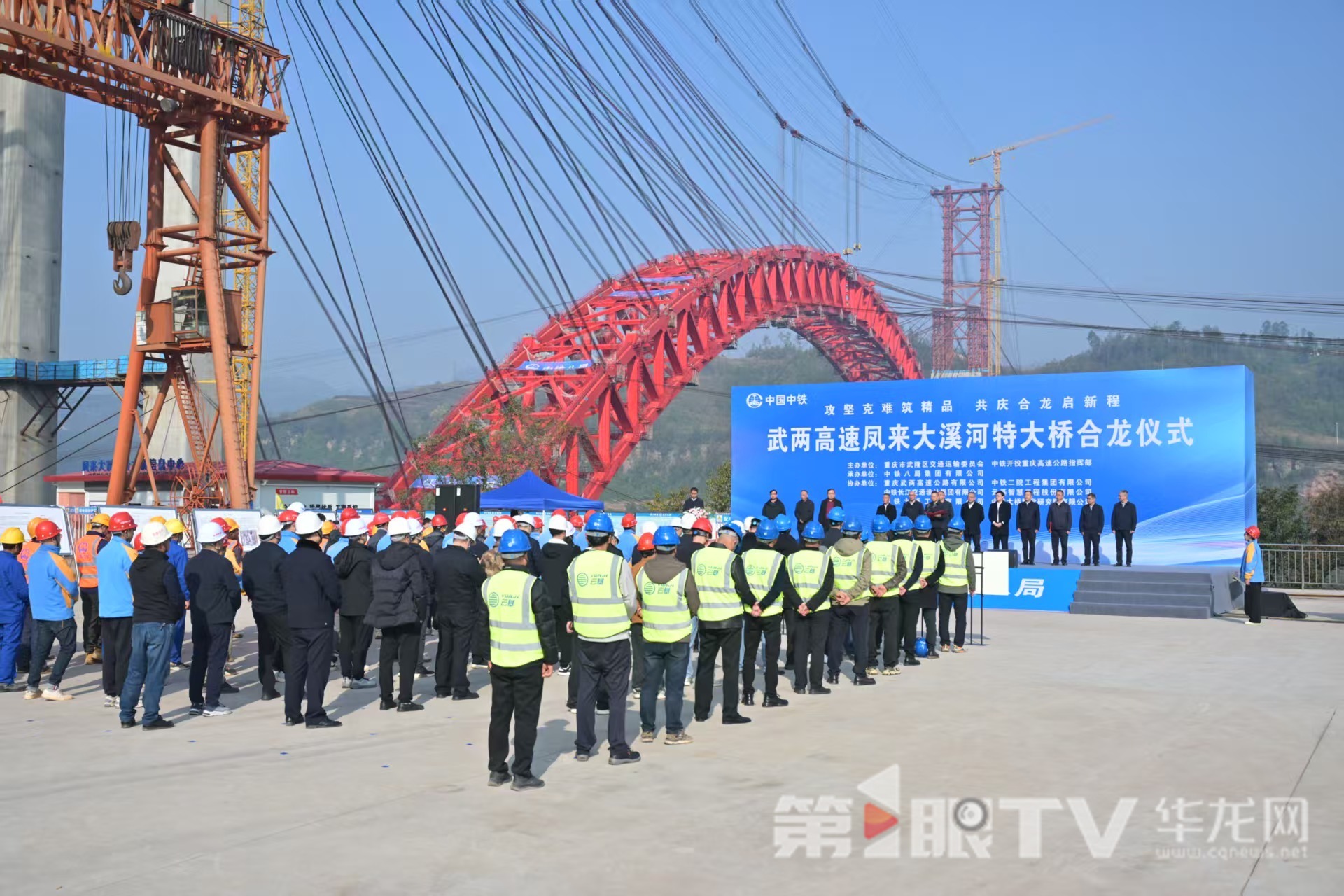11月27日,重庆武隆至两江新区高速公路(以下简称武两高速)凤来大溪河特大桥钢桁拱合龙,标志着大桥建设迎来万吨悬臂体系转换的重大节点。