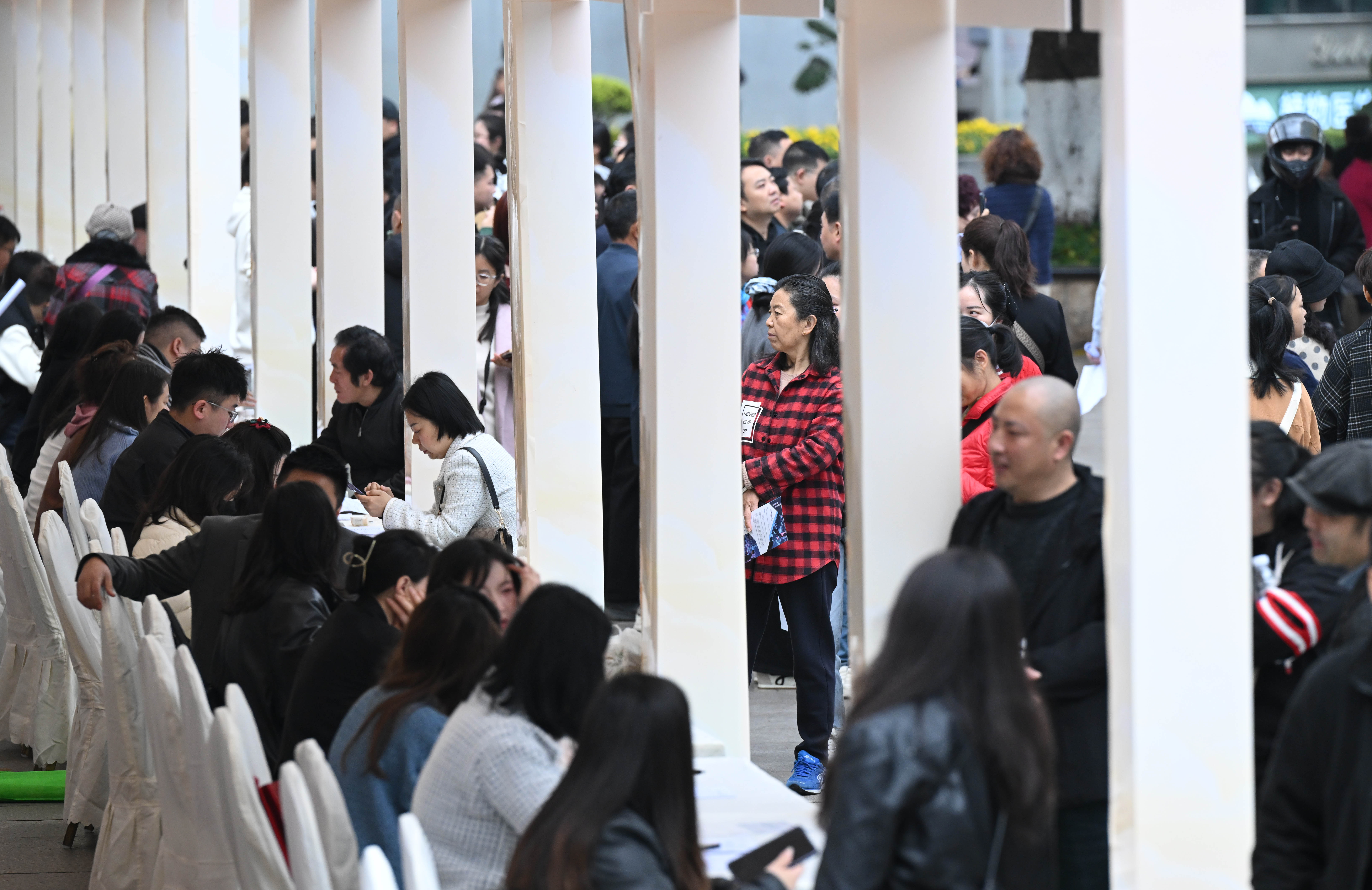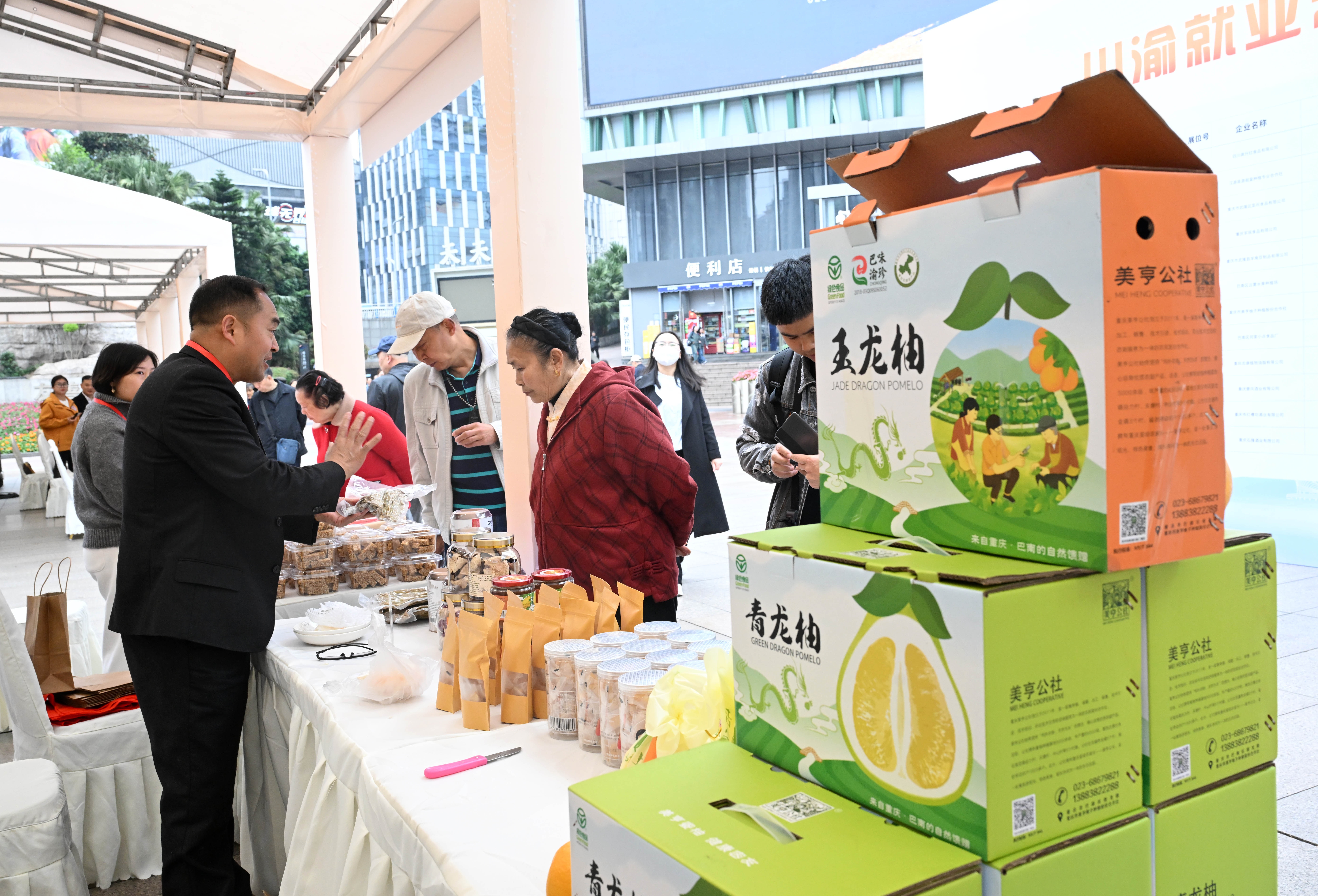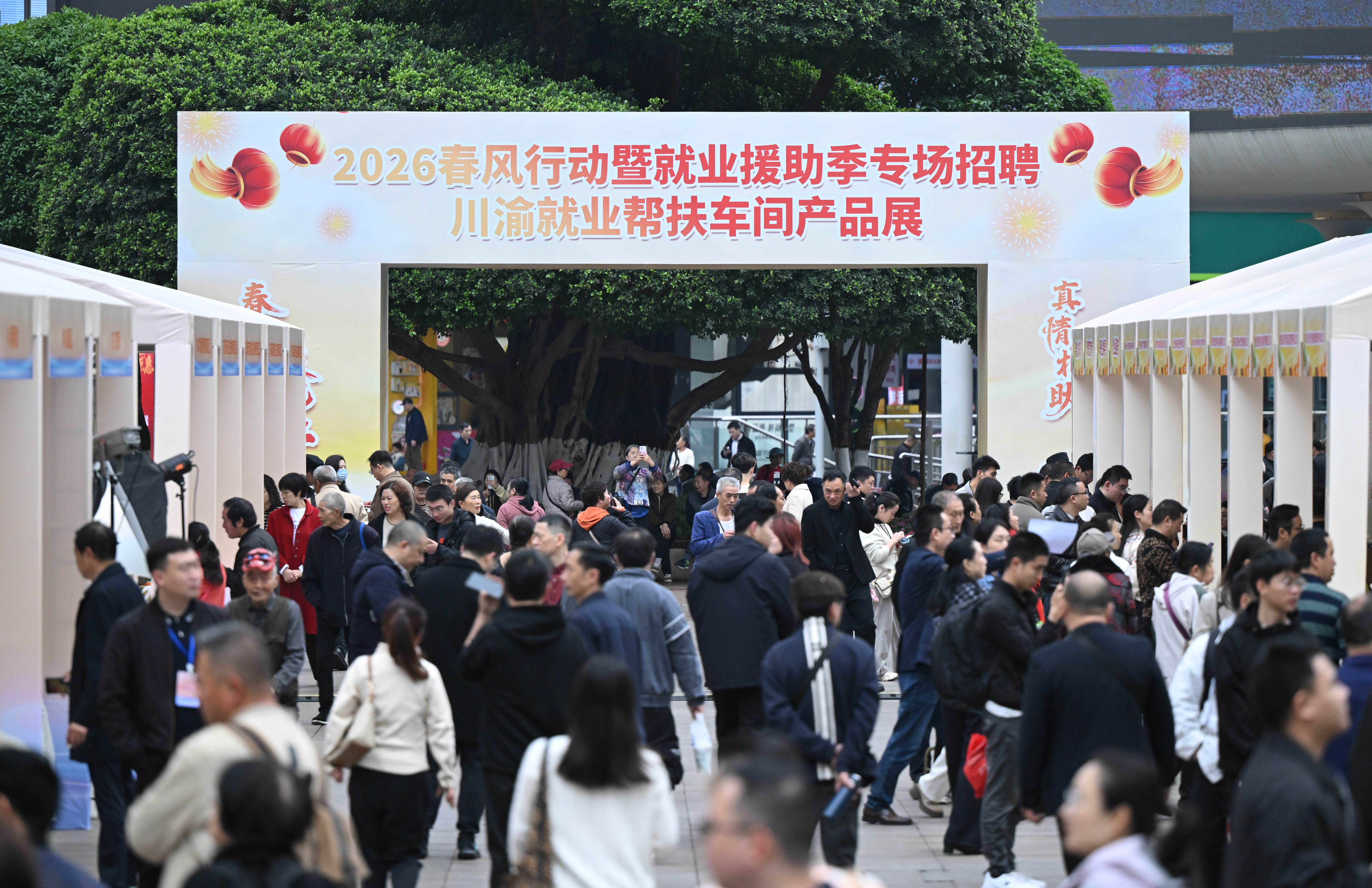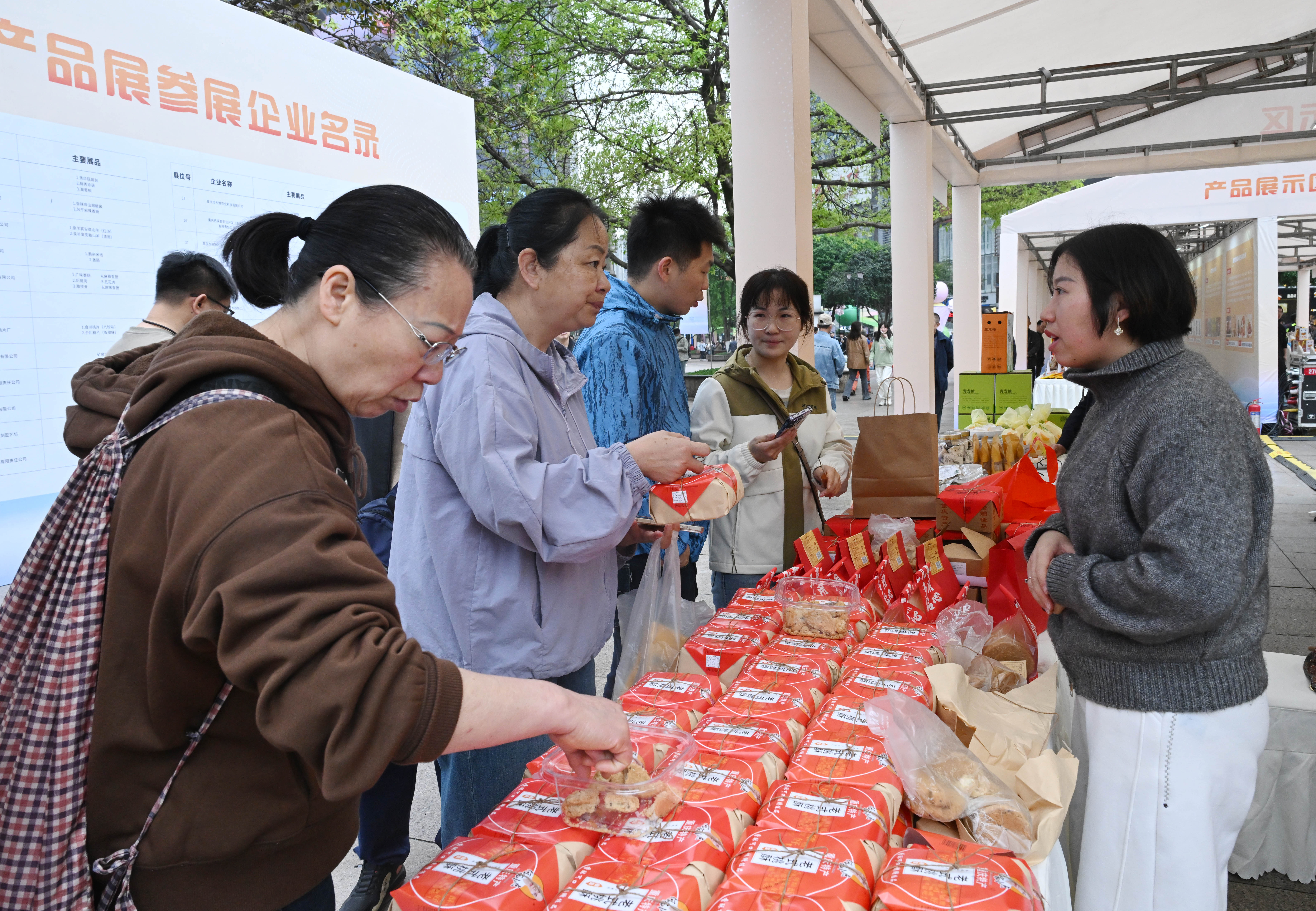 3月30日,“唱好新时代西部双城记 建设高质量就业先行区”川渝联合招聘会暨就业帮扶车间产品展在观音桥步行街举行。 记者 罗斌 摄/视觉重庆