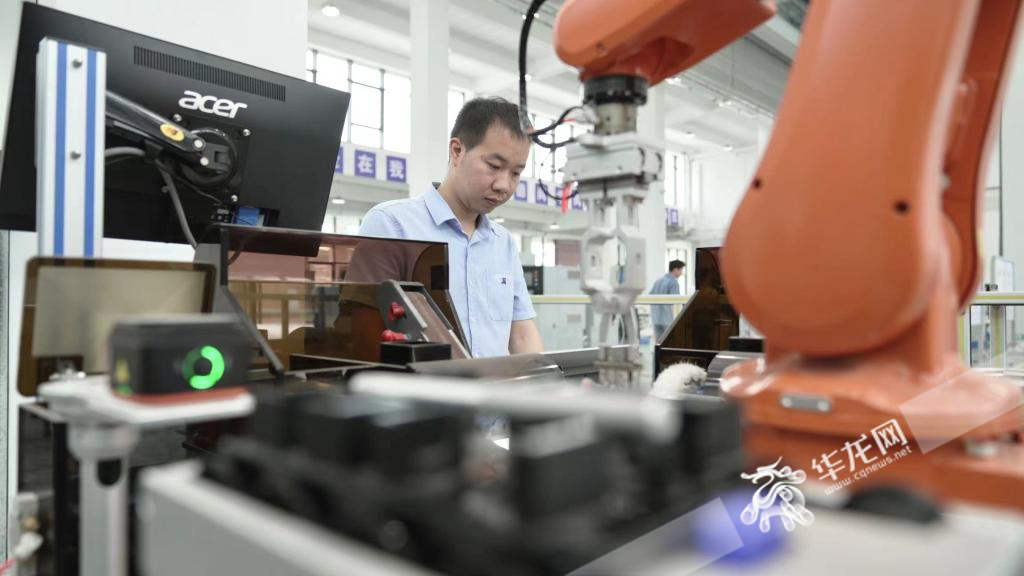 学院老师利用机械臂进行打磨单元测试。 华龙网记者 刘钊 摄