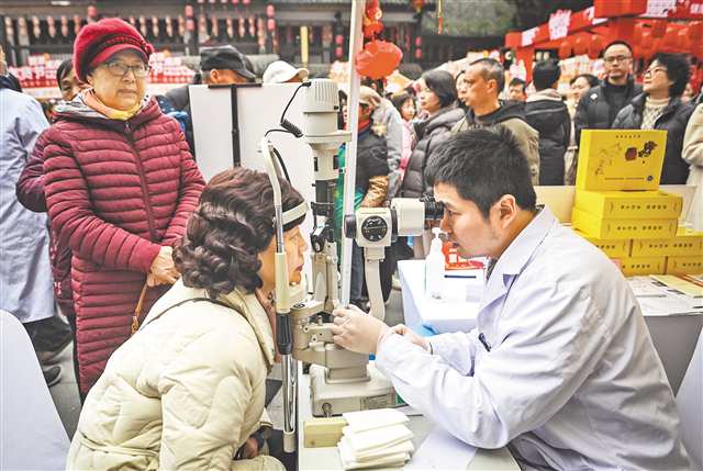 2月1日,沙坪坝区磁器口老牌坊广场,以“健康年货节·活力迎新年”为主题的健康集市现场,市民正在体验各种诊疗。记者 郑宇 摄/视觉重庆