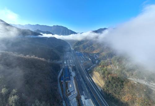 2025年12月25日,重庆城口(陕渝界)至开州高速公路陕渝界至北屏段正式通车,图为,通车段在山间蜿蜒,云雾缭绕,风景如画。 记者 罗斌 摄