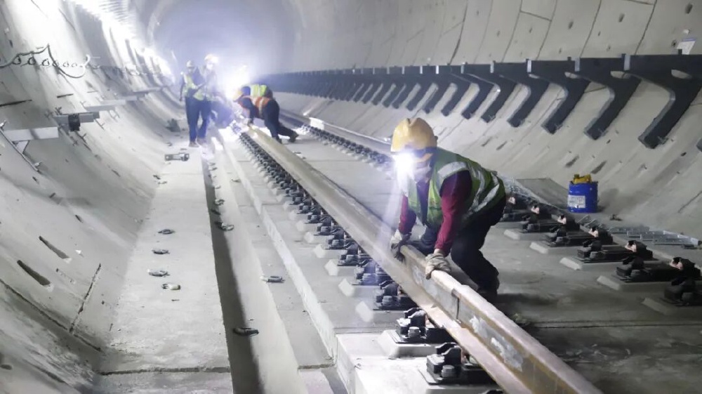 自开工以来,施工方面对线路长、工况复杂,交叉施工密集等多重挑战,科学统筹、精准施策,通过设置,4个主铺轨基地与6个辅助铺轨基地同步作业,采用“装配式轨道系统”实现多作业面平行流水施工,针对中梁山隧道、廖家溪轨道专用桥等重难点区段,运用BIM技术模拟施工、精密测量控制,攻克长距离隧道铺轨、大跨度桥梁轨道精调等技术难题,同时,严格把控钢轨焊接、轨道精调,道床浇筑等关键工序质量,确保轨道几何尺寸误差控制在毫米级。